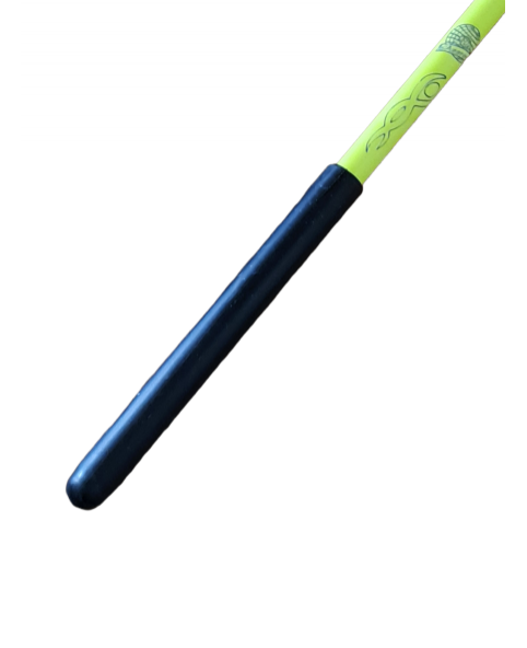 Introducing the Neon Yellow Grip Stick with black grip, designed for high performance in rhythmic gymnastics. Measuring 59 cm, this stick is crafted from durable fiberglass, ensuring strength and flexibility. It features high precision mechanical movement for optimal control during routines. The VNT and F.I.G. laser markings are guaranteed for life, providing assurance of quality and authenticity. Proudly made in Italy, this grip stick is F.I.G. approved, making it an essential tool for gymnasts looking to enhance their skills.